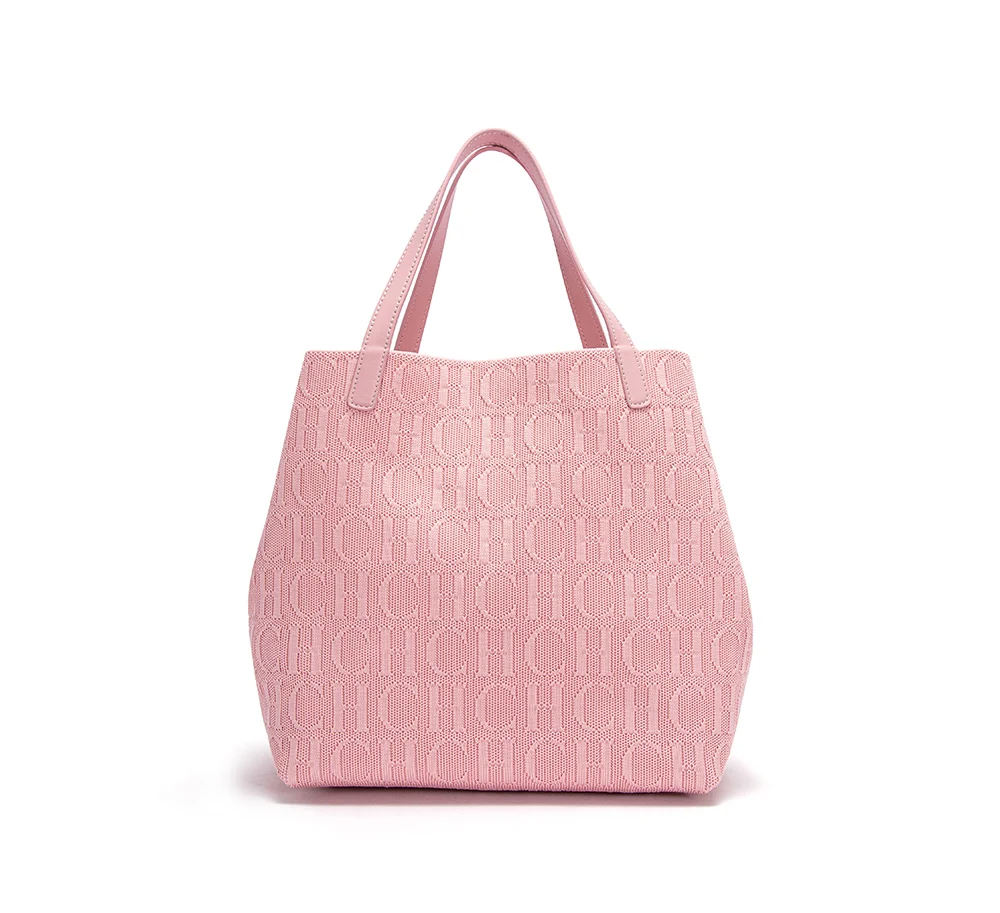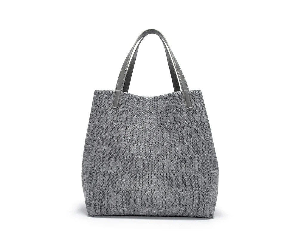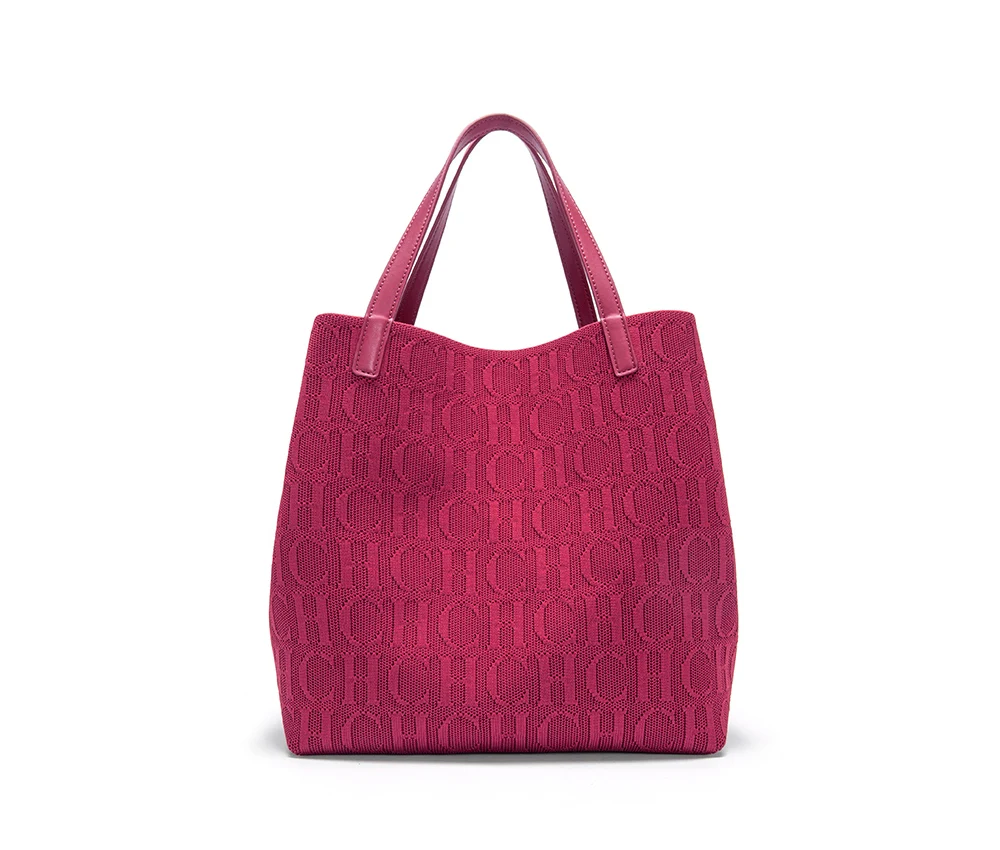 CHCH New Tote Bag Large Capacity Black Simple Knitted Shopping Bag 27*20*28cm